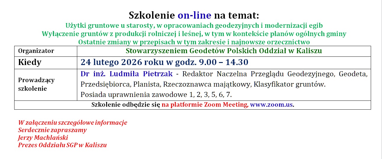 Zgłoszenia prosimy przesyłać pocztą e-mail na adres: kalisz@sgp.geodezja.org.pl do dnia 23 lutego 2026 r.